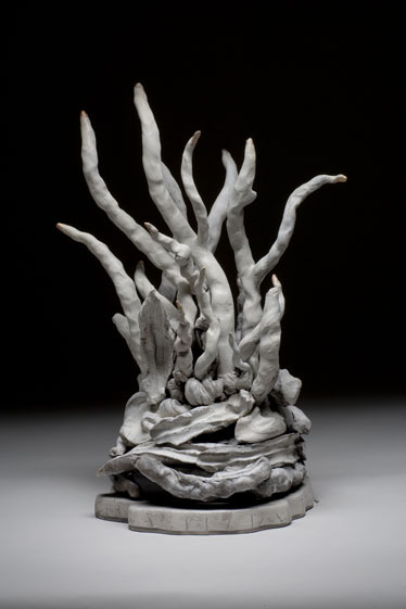 These gnarled and twisted forms which are made by twirling, tearing and spiraling chunks of clay are conceived as objects for contemplation. Their abstract ambiguity allows each viewer to bring forth what they believe to be the imagery.